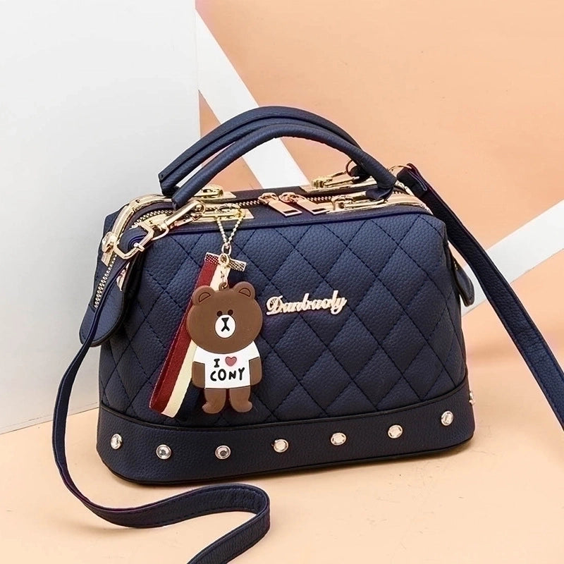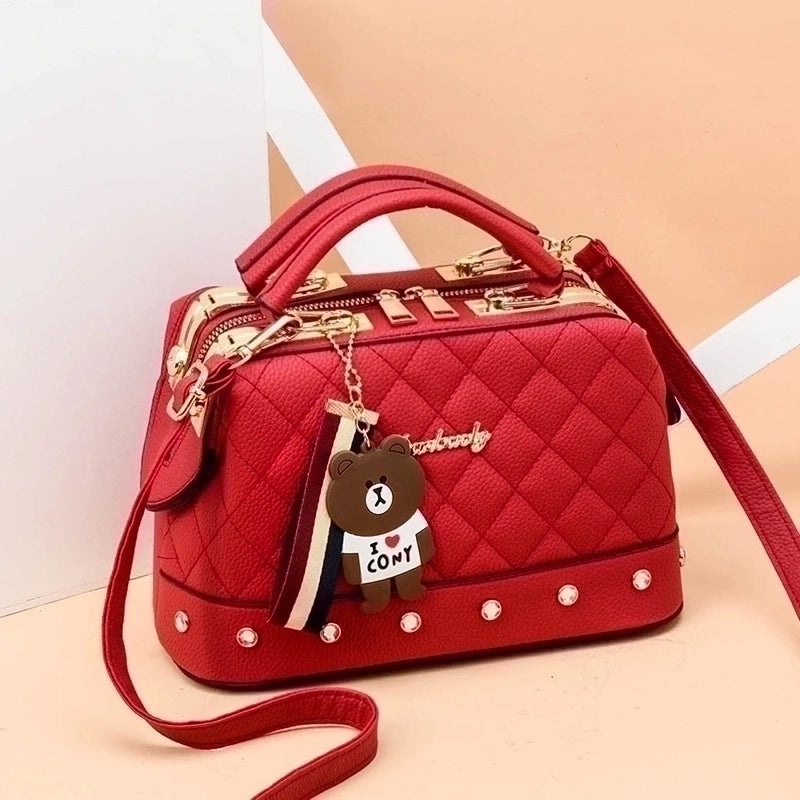 Be the first to review “Women’s Medium Pu Leather Solid Color Cute Ornament Square Zipper Crossbody Bag” Cancel reply