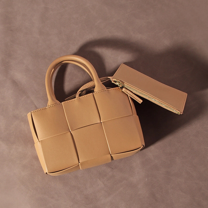 Be the first to review “Women’s Medium Two-Layer Cowhide Leather Solid Color Business Weave Square Open Shoulder Bag” Cancel reply