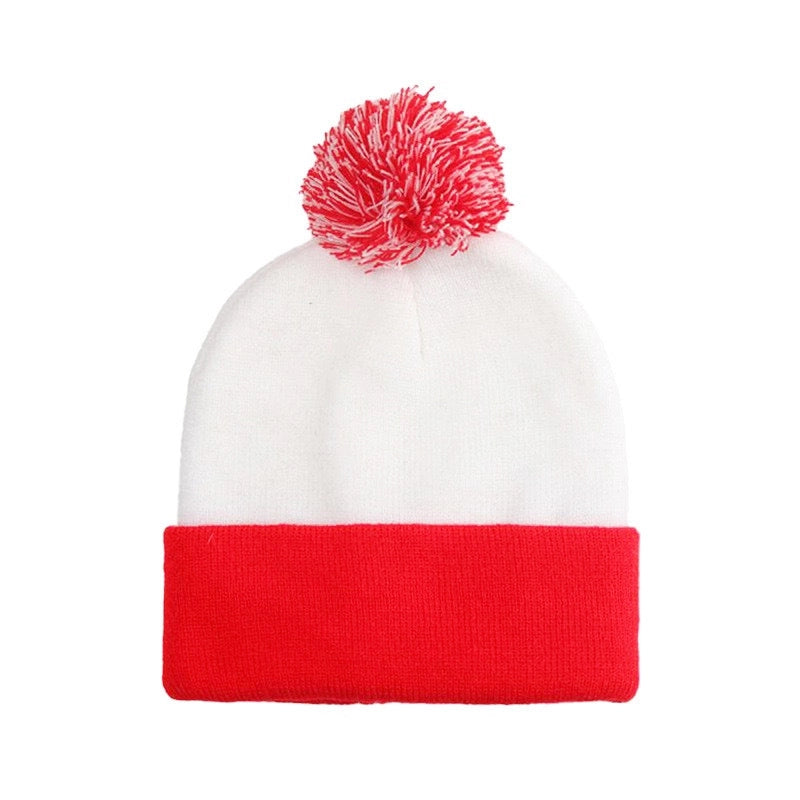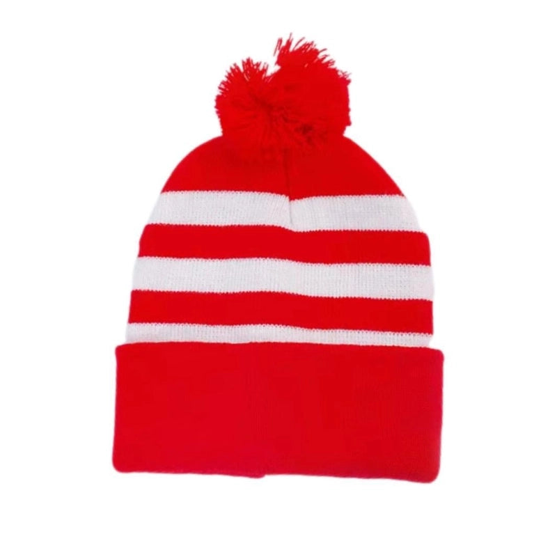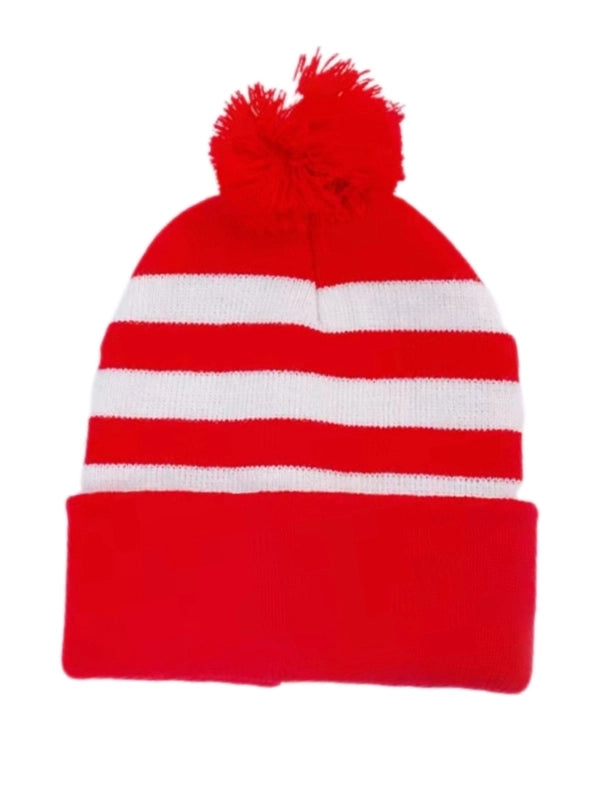 Women’s Minimalist Classic Style Stripe Pom Poms Crimping Beanie Hat