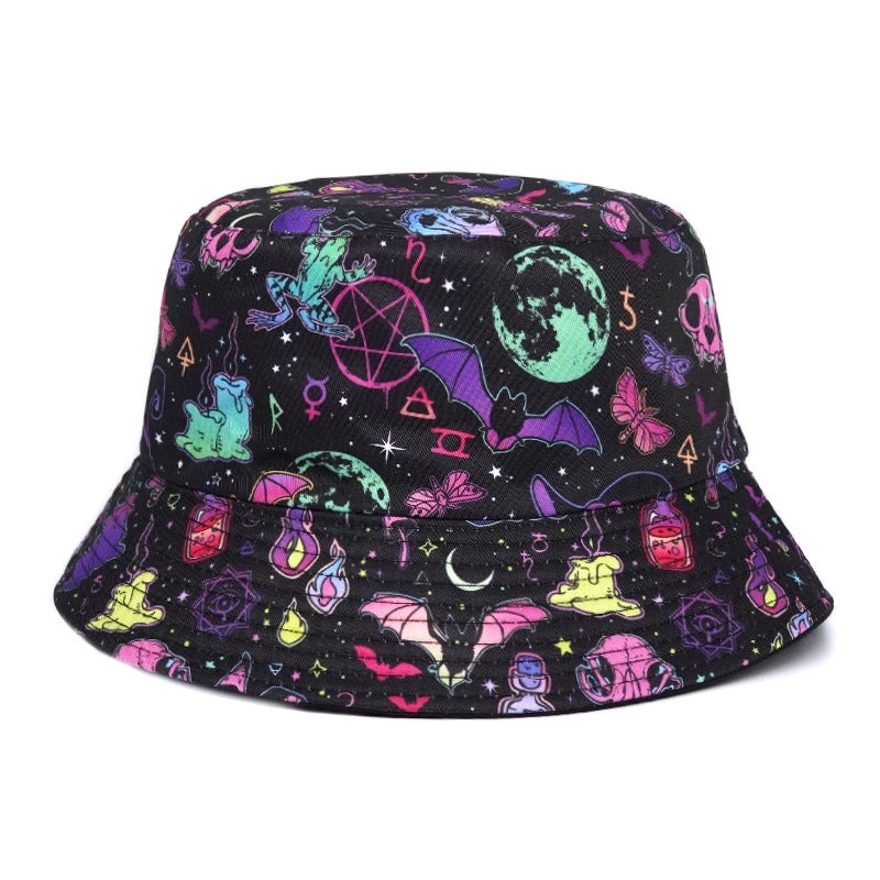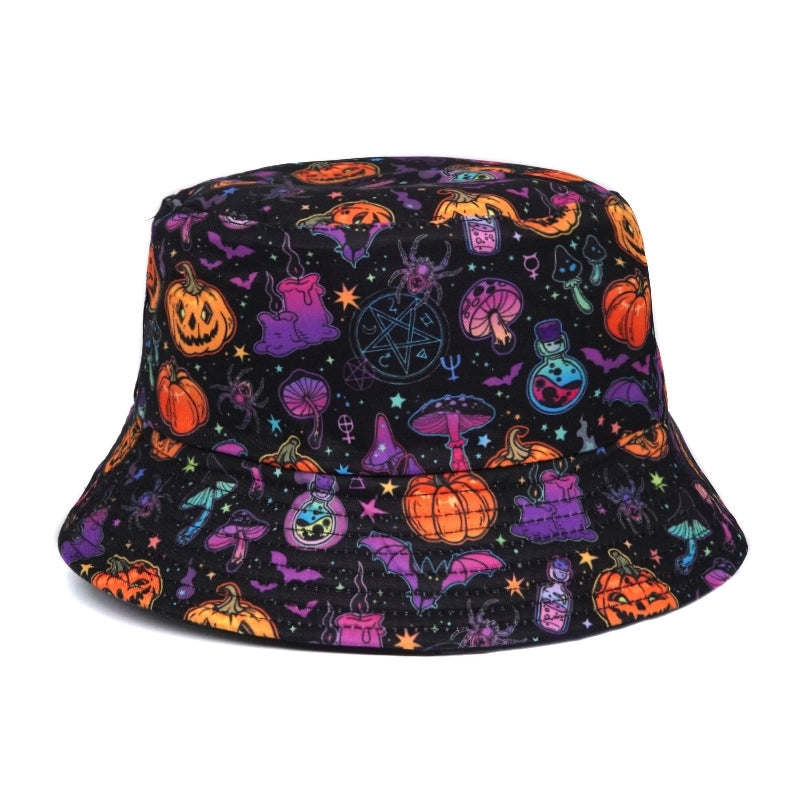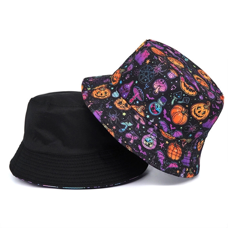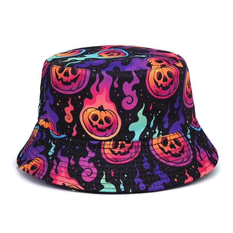 Women’s Modern Style Streetwear Printing Pumpkin Printing Wide Eaves Bucket Hat