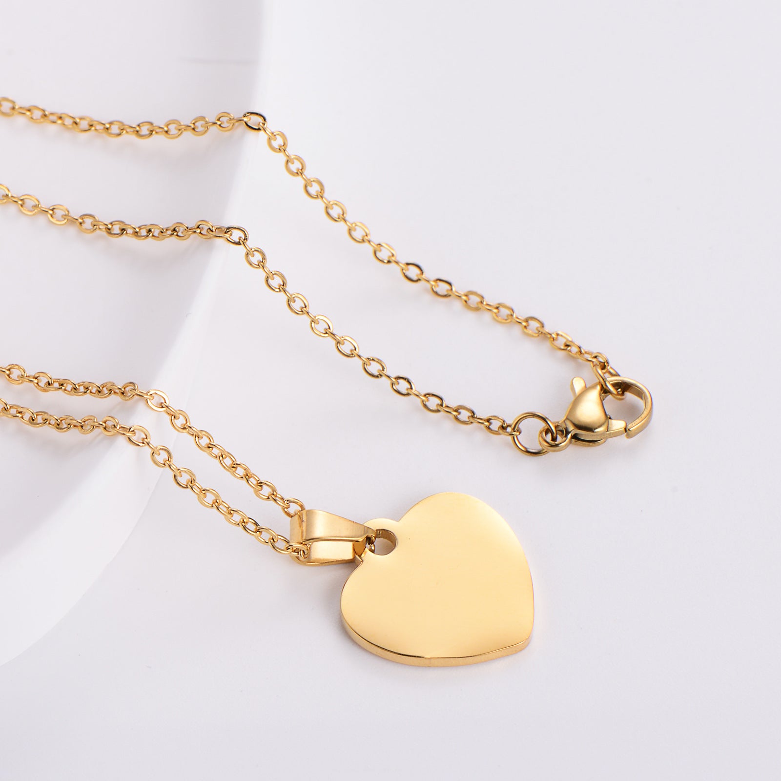 Women’S Personalized Laser Engraved 18K Gold Plated Stainless Steel Heart-Shaped Love Pendant Necklace