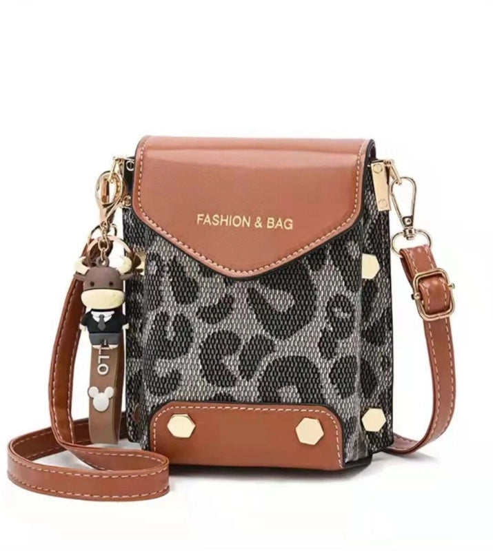 Women’s Pu Leather Houndstooth Lingge Leopard Classic Style Square Magnetic Buckle Crossbody Bag