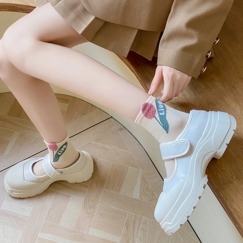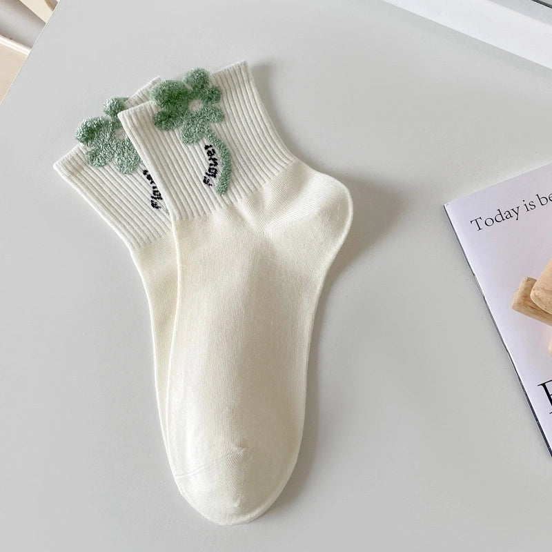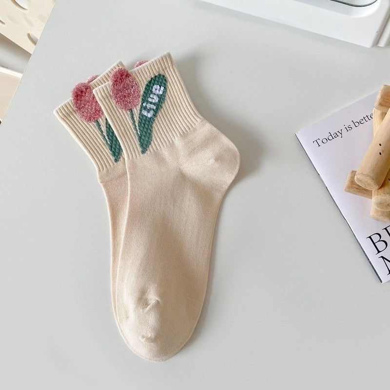 Women’s Sweet Flower Cotton Crew Socks A Pair