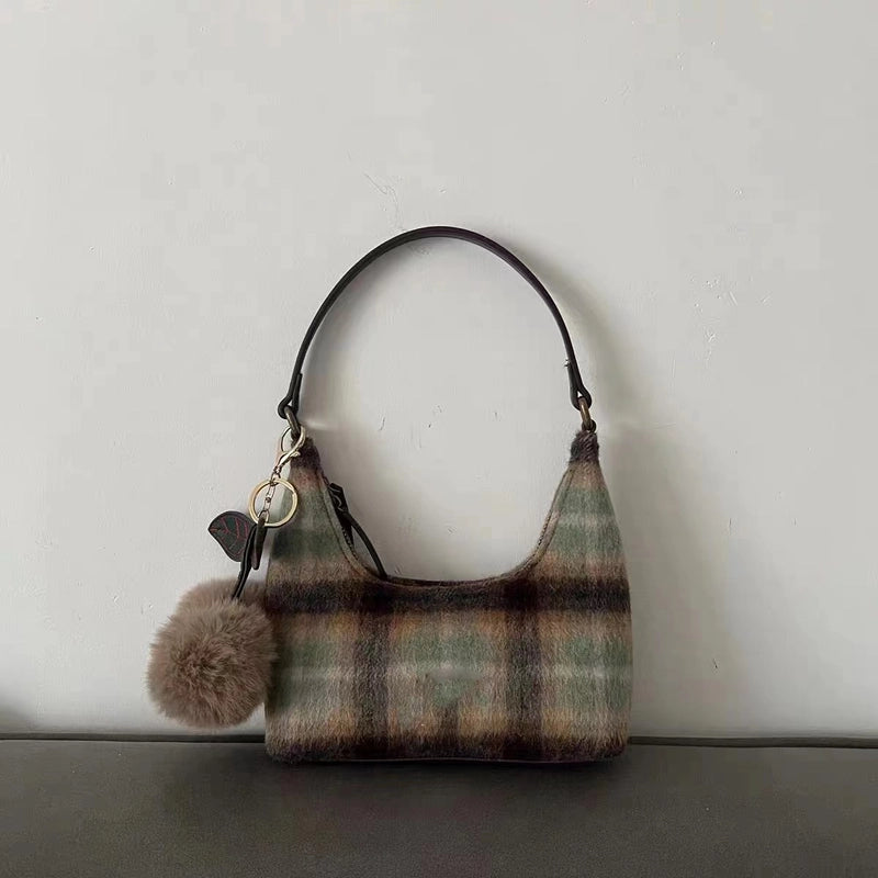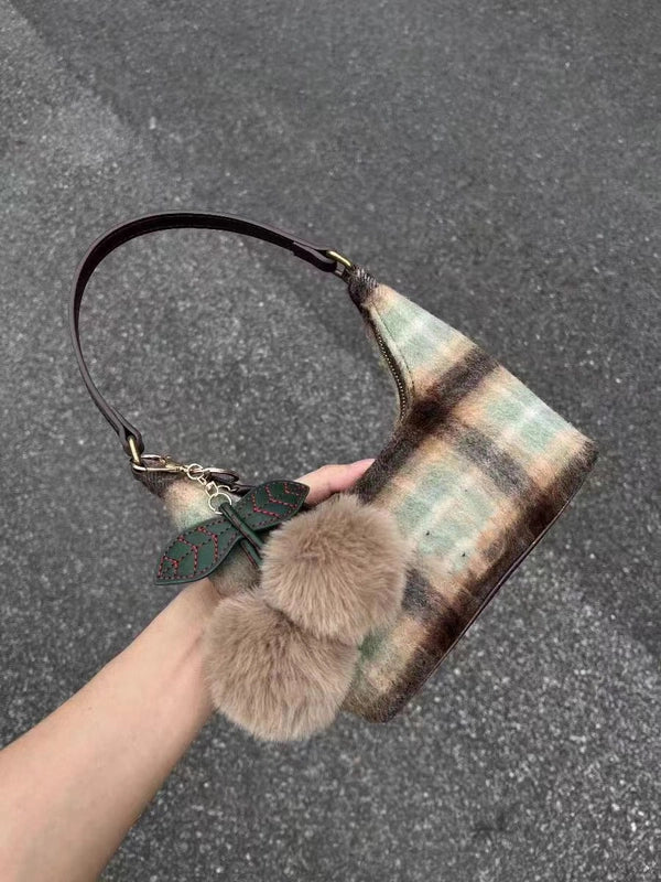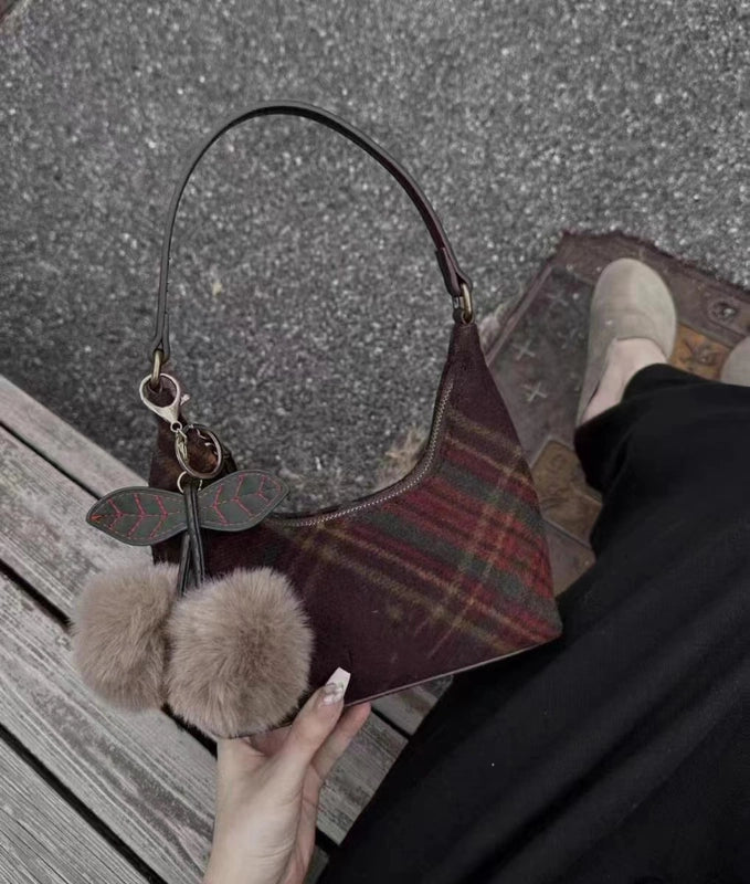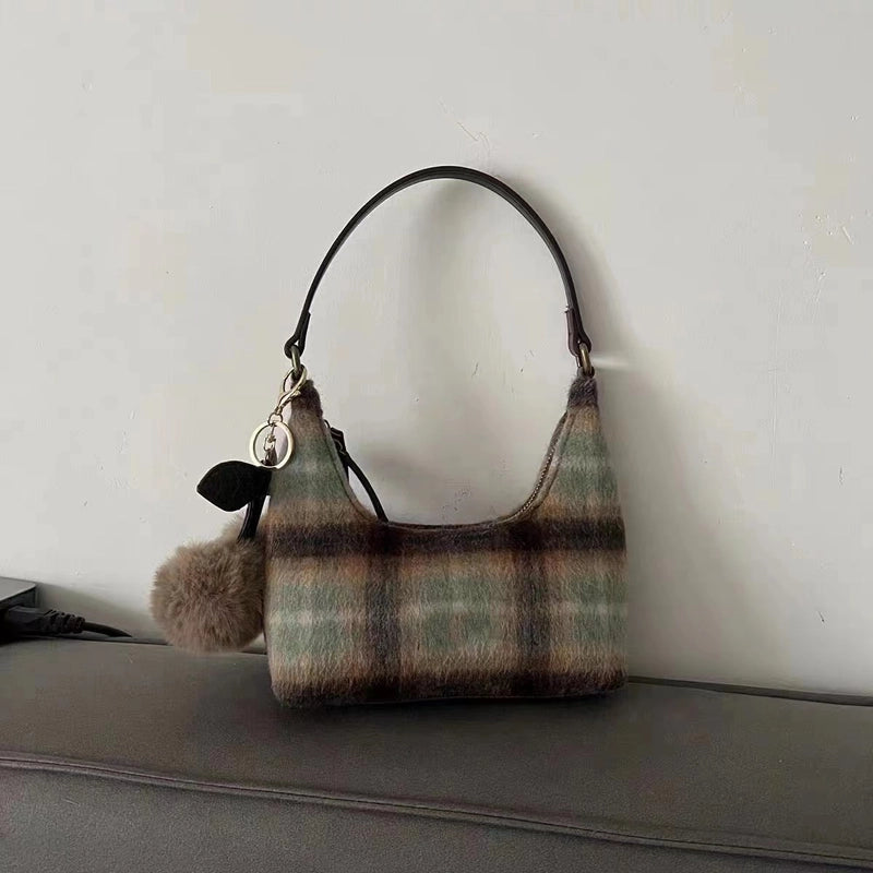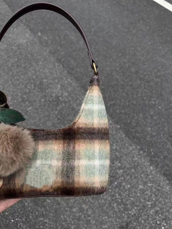 Wool Plaid Retro Niche Underarm Bag For Women New Autumn And Winter Cherry High-grade Portable Shoulder Bag